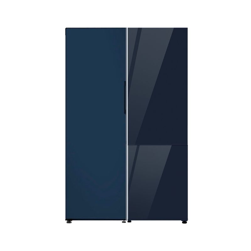 Geladeira Bespoke Duplex Inverse 328L E Freezer 1 Porta 315L Side By Side 3 Portas Acabamento Em Vidro Temperado Azul Marinho 110V